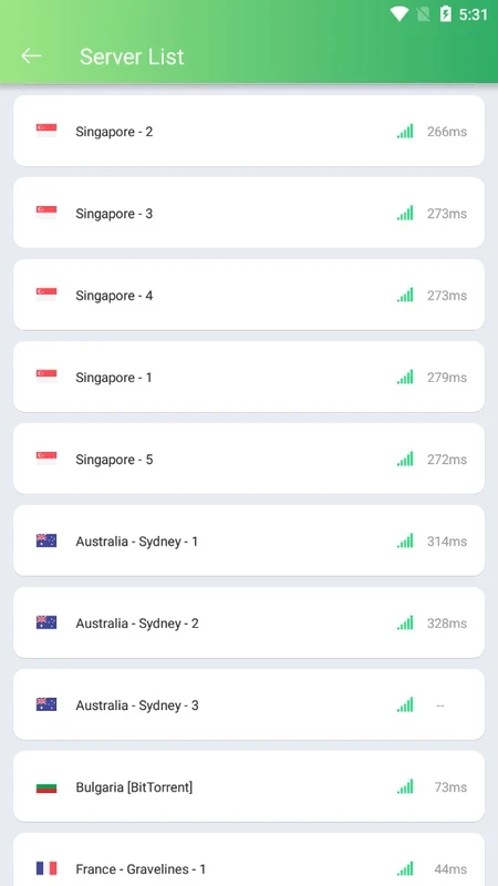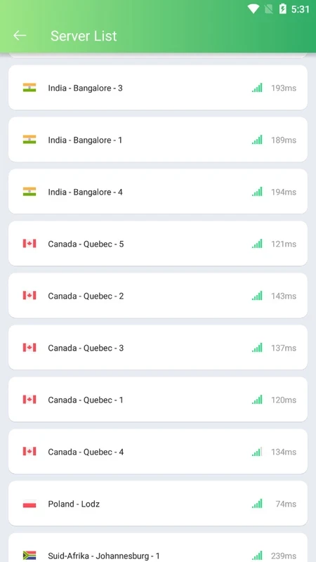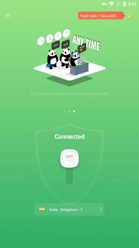 The simplicity is the main character of the app, as on accessing the main screen, you will find an interface within an adorable panda logo that looks like a cartoon, and have one big button for switching on/off the app. On the main screen, you will find dozens of servers for your ease in selecting to connect with your desired location.